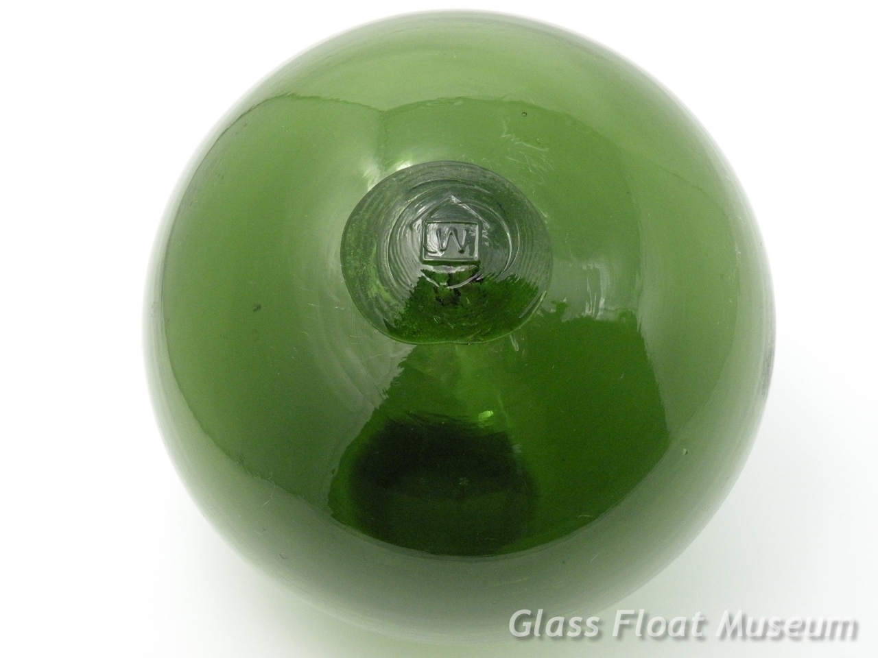 Nice dark green 6 inch float with a Big 'W' in a House stamped on the seal button.