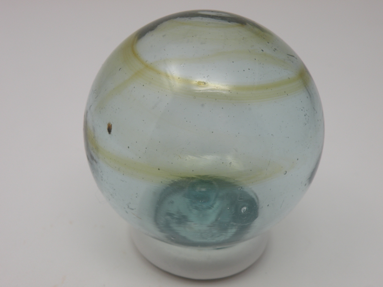 Nice yellow swirls in a 3 inch float. Clear and complete WP #10 'Rivermouth' in a triangular configuration.